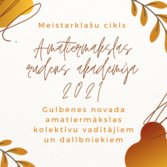 No 2021.gada oktobra vidus līdz novembra beigām Gulbenes novada amatiermākslas kolektīvu vadītājiem, dalībniekiem un citiem interesentiem iespēja pieteikties uz vairākām meistarklasēm/lekcijām, kas sadalītas divos blokos.