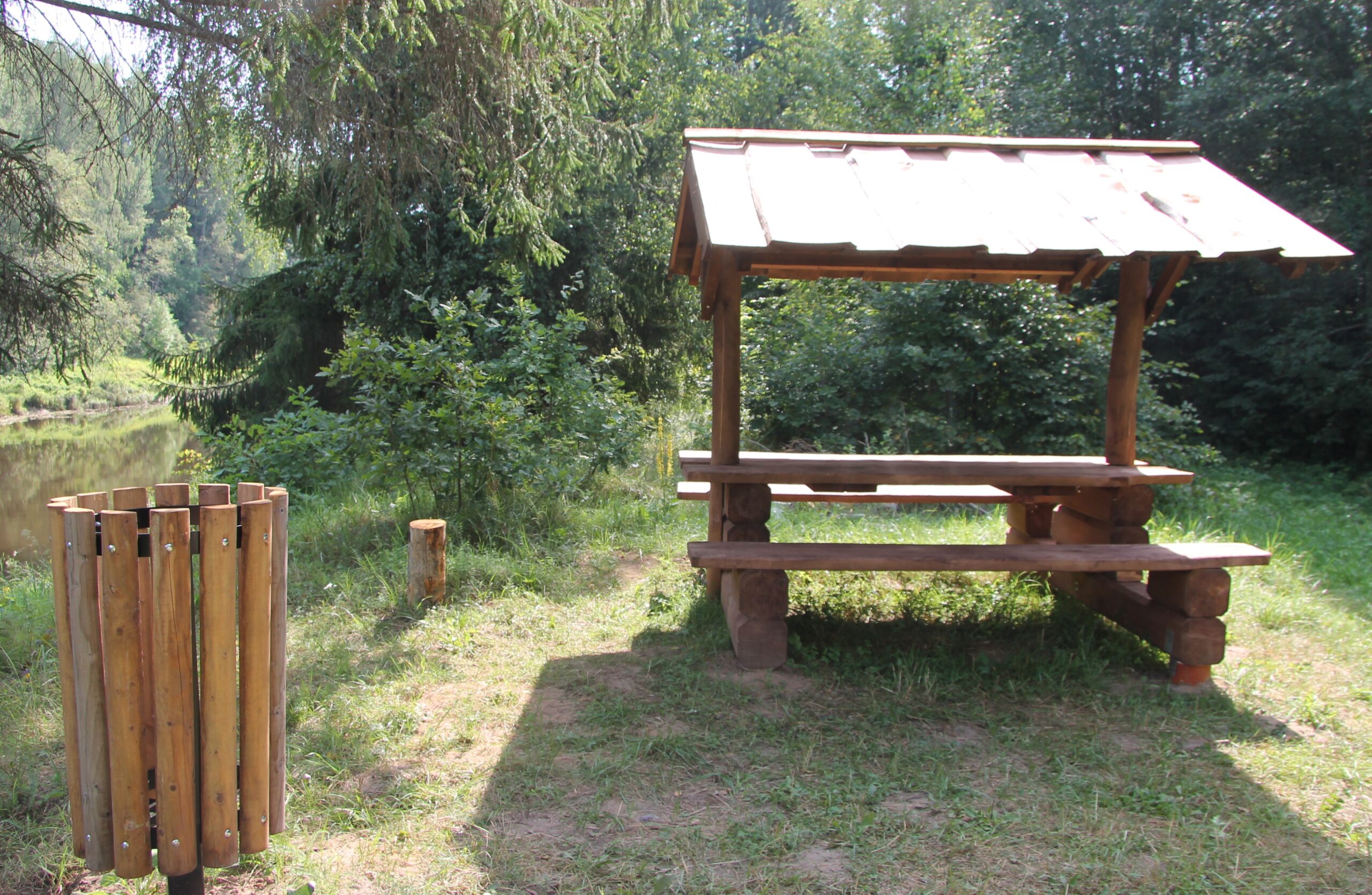 Pirmā atpūtas vieta ir iekārtota autoceļa Valka-Vireši kreisajā pusē aiz Gaujas tilta. Tajā uzstādīta piknika nojume ar galdu un soliem, atkritumu urna, labiekārtota ugunskura vieta, kā arī informatīvais stends ar tūrisma piedāvājumu apkārtnē.