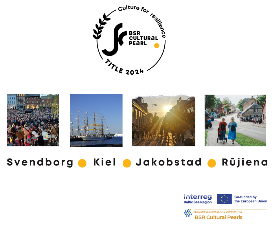 Starptautiska žūrija ir paziņojusi uzvarētājus – pilsētas, kurām piešķirts Baltijas jūras reģiona kultūras pērles (turpmāk – BSR Cultural Pearls) tituls 2024. gadam. No 12 Baltijas jūras reģiona valstu kandidātiem tika izvēlētas Svendborga (Dānija), Ķīle (Vācija), Jākobštate (Somija) un Rūjiena (Latvija). Šīs pilsētas bija sagatavojušas labākos kultūras un sociālās noturības rīcības plānus, kuru mērķis ir stiprināt savas kopienas un saliedēt iedzīvotājus, izmantojot kultūru un radošumu.