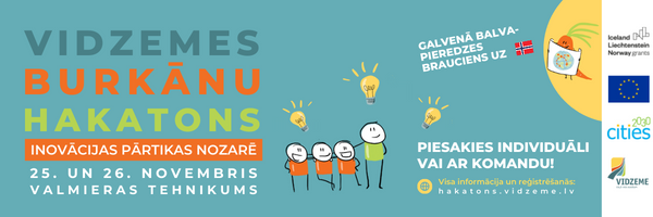 Vidzemes pārtikas inovāciju hakatons top Eiropas Ekonomiskās zonas finanšu instrumenta 2014.—2021. gada perioda programmas “Vietējā attīstība, nabadzības mazināšana un kultūras sadarbība” projekta “Uzņēmējdarbības atbalsta pasākumi Vidzemes plānošanas reģionā” un programmas “Apvārsnis 2020” projekta “Sadarbībā balstīta ilgtspējīgu un drošu pārtikas sistēmu veidošana “Food2030” mērķu sasniegšanai” (CITIES2030) mijiedarbībā.