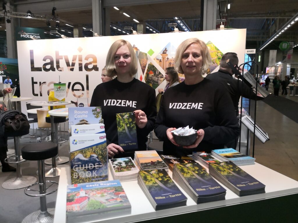 Tūrisma ceļa “galapunkti” – Rīga un Tartu – ir starptautiski pazīstami, tāpēc stenda apmeklētāji izrādīja interesi par daudzveidīgajām atpūtas iespējām Vidzemē, kā arī labprāt ņēma karti “Rīga – Tartu” izpētīšanai mājās.