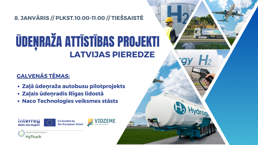 2025. gada 8. janvārī plkst. 10.00 (pēc Latvijas laika) interesenti aicināti piedalīties starptautiskā ikmēneša vebinārā, kurā uzmanības centrā šoreiz būs Latvijas pieredze ūdeņraža kā alternatīvās degvielas ieviešanā un attīstībā Latvijas tirgū.