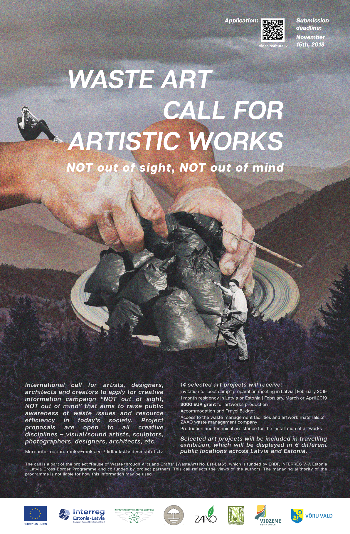 Vides risinājumu institūts sadarbībā ar partneriem no Igaunijas un Latvijas, tostarp Vidzemes plānošanas reģionu, izsludina mākslas projektu konkursu “NOT out of sight, NOT out of mind” māksliniekiem, dizaineriem, arhitektiem un citiem radošo industriju pārstāvjiem. Lai vēstītu par patērētāju sabiedrības radīto atkritumu apjomu, to izraisītajām problēmām un atkārtotas izmantošanas iespējām, mākslinieki līdz 15. novembrim aicināti pieteikt projektus dažādās disciplīnās – vizuālā, audio – vizuālā māksla, tēlniecība, fotogrāfija, grafiskais dizains, arhitektūra, performanču māksla u. c.