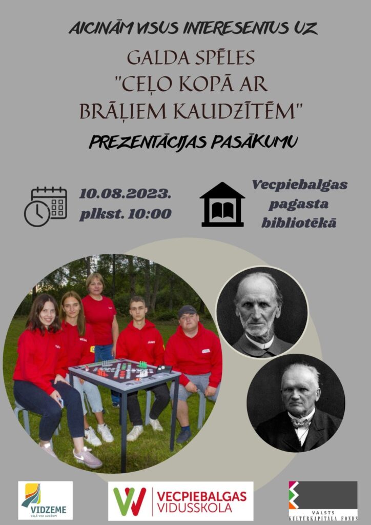 Vecpiebalgas vidusskola ir realizējusi “Vidzemes vēsturiskās zemes kultūras programmas 2023” Valsts Kultūrkapitāla fonda un Vidzemes plānošanas reģiona atbalstīto projektu “Galda spēle “Ceļo kopā ar brāļiem Kaudzītēm””.