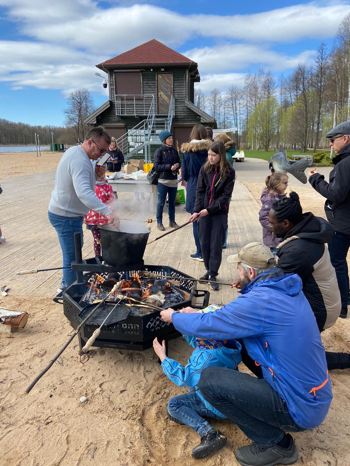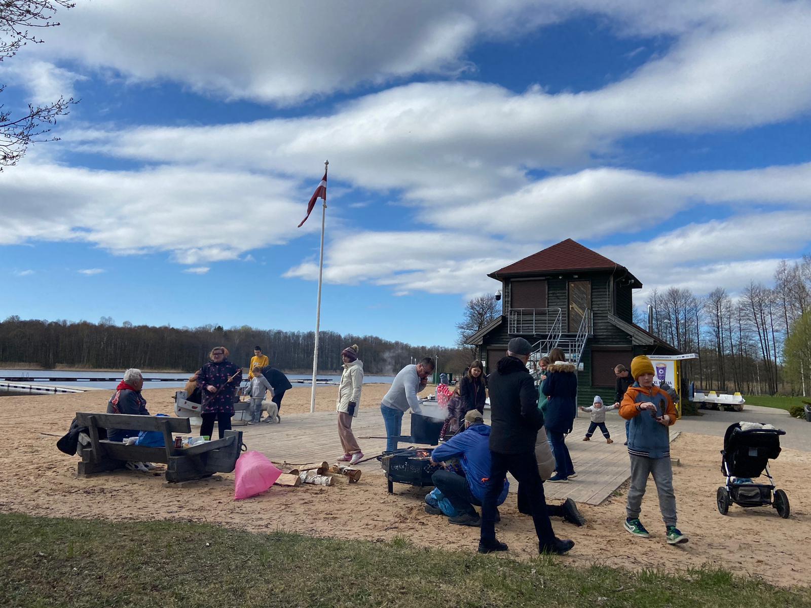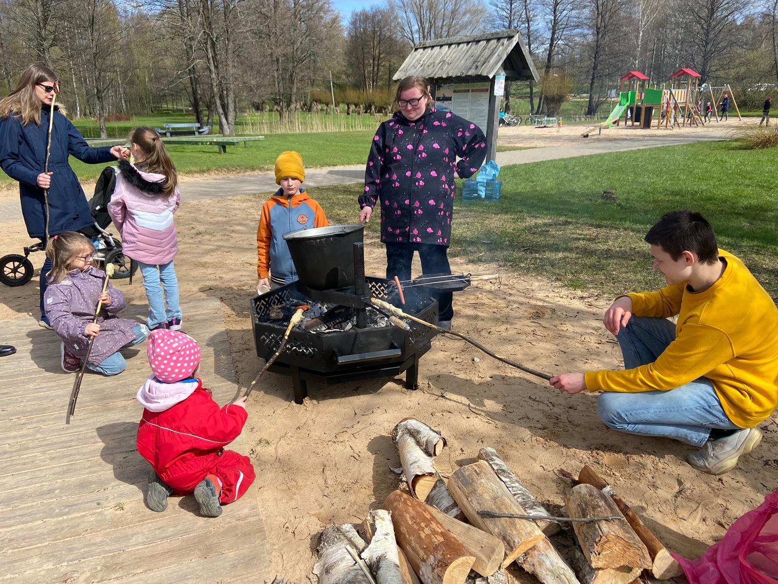 Bērni rotaļājās, piedalījās foto orientēšanās spēlē un pieaugušo uzraudzībā cepa “koka maizi”. Pēcpusdienas noslēgumā visi pulcējās kopīgā piknikā, baudot uz ugunskura vārīto zupu, cepot desiņas un pavadot laiku sarunās.