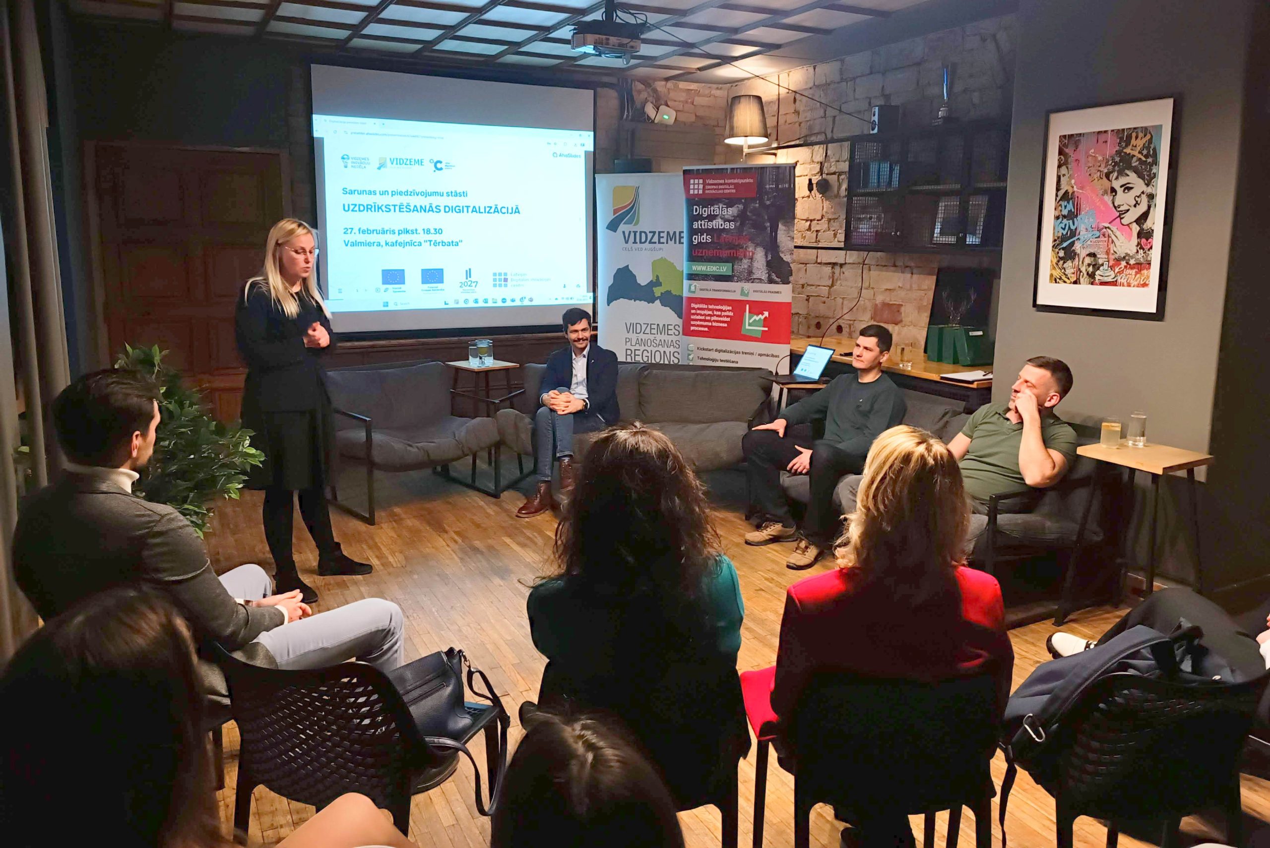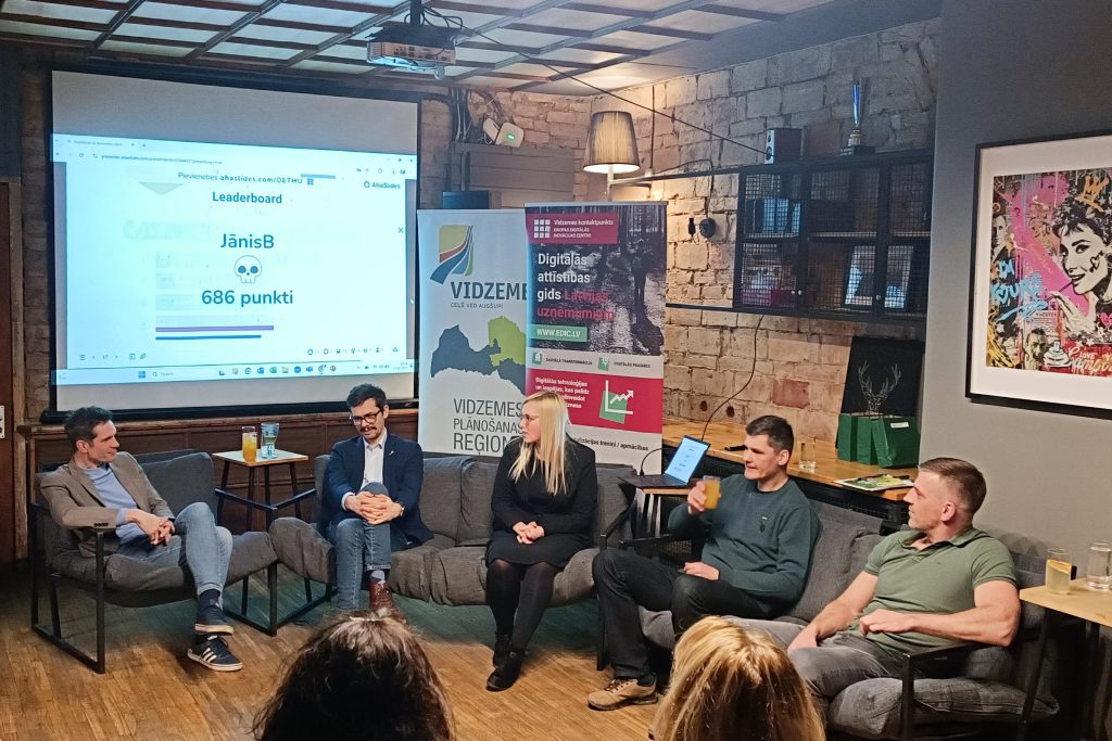 Vidzemes Inovāciju nedēļas 2025 ietvaros Valmierā, kafejnīcā “Tērbata”, notika sarunu vakars “Uzdrīkstēšanās digitalizācijā”, kas pulcēja dažādu nozaru uzņēmējus, tehnoloģiju ekspertus, pārmaiņu virzītājus un tos, kam digitalizācija ir ikdiena un pilnīgs jaunums. Atvērtās sarunās notika diskusijas par digitalizācijas būtību, tās ieviestajām pārmaiņām ikdienā un uzņēmumos, izaicinājumiem, ar kuriem rēķināties, un EDIC piedāvātajām iespējām digitalizācijas veicināšanai.