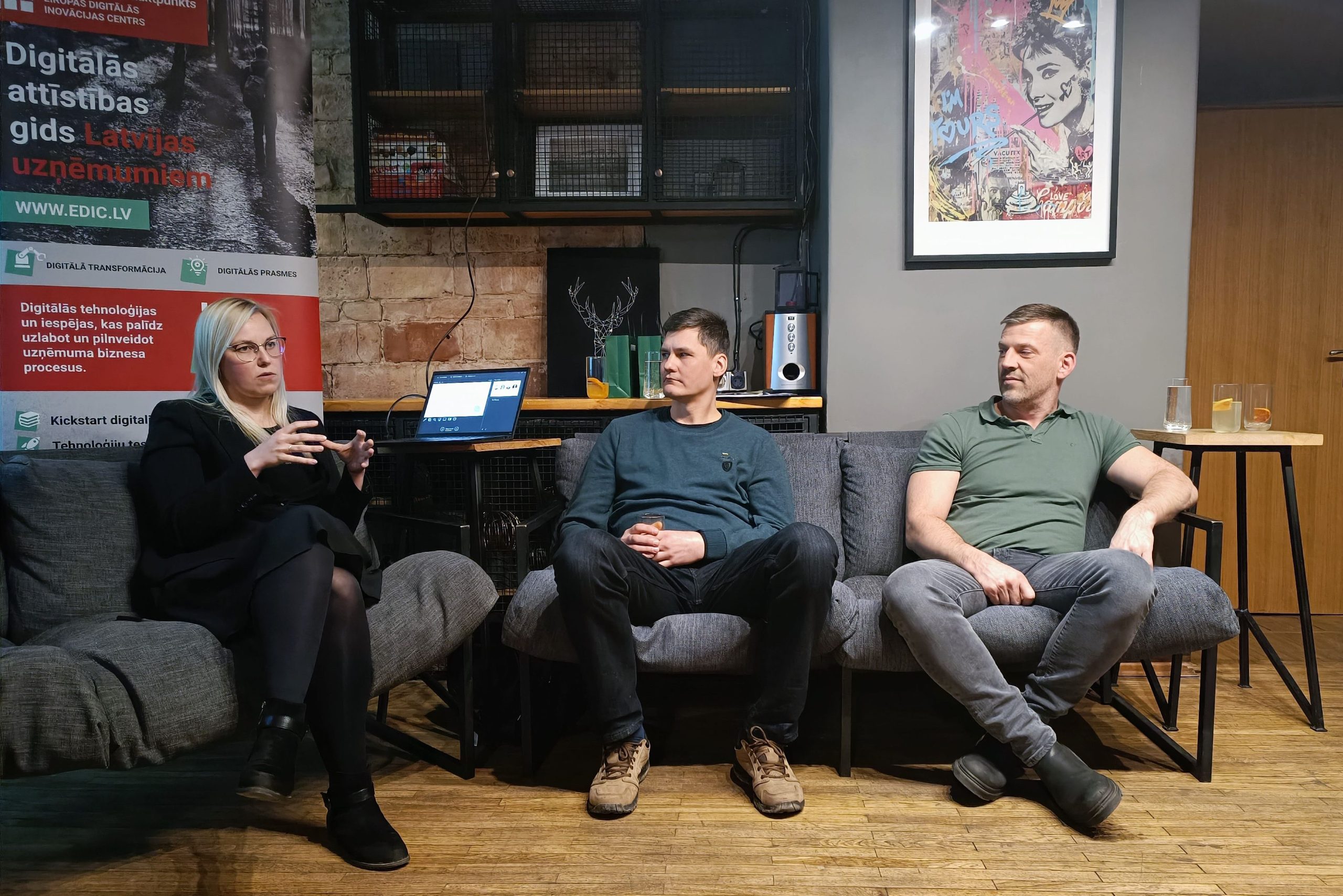Ieva Kreile, EDIC pārstāve, ikdienā konsultē uzņēmumus par EDIC iespējām un palīdz uzņēmējiem saprast, vai tehnoloģijas var būt risinājums izvirzītajai problēmai. “Dažkārt risinājums ir nevis jauna tehnoloģija, bet vienkārši efektīvāka darba organizācija,” atzina Kreile. Viņa arī iesaka sākt ar apmācībām par biznesa un pārmaiņu vadību, digitālo transformāciju un kiberdrošību, un tikai pēc tam turpināt ar jaunu tehnoloģiju ieviešanu. “Būtiski vispirms saprast arī savas jau esošās iespējas, tad pamēģināt dažādus bezmaksas rīkus vai notestēt konkrētu risinājumu un tikai tad investēt lielus finansiālos līdzekļus”.