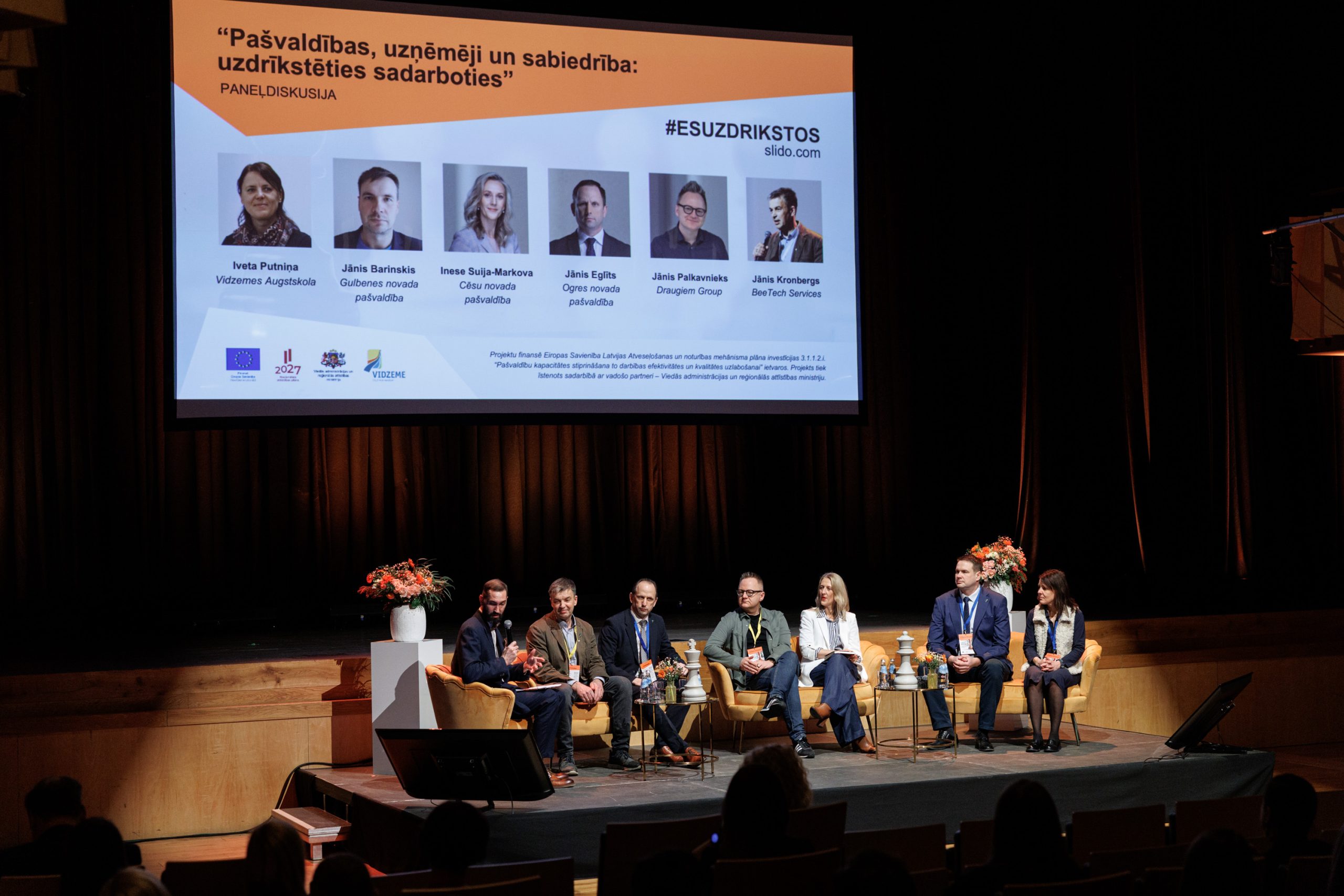 Paneļdiskusijā par sadarbības nozīmi starp pašvaldībām, uzņēmējiem, izglītības iestādēm un sabiedrību izkristalizējās atziņa, ka ilgtspējīga attīstība nav viena sektora uzdevums – tikai koordinēta un uz uzticēšanos balstīta sadarbība starp visām iesaistītajām pusēm var nest ilgtermiņa rezultātus. Diskusijā piedalījās Iveta Putniņa (Vidzemes Augstskola), Jānis Barinskis (Gulbenes novada pašvaldība), Inese Suija-Markova (Cēsu novada pašvaldība), Jānis Eglīts (Ogres novada pašvaldība), Jānis Palkavnieks (Draugiem Group) un Jānis Kronbergs (BeeTech Services). Forumu un diskusijas moderēja Vilis Brūveris.