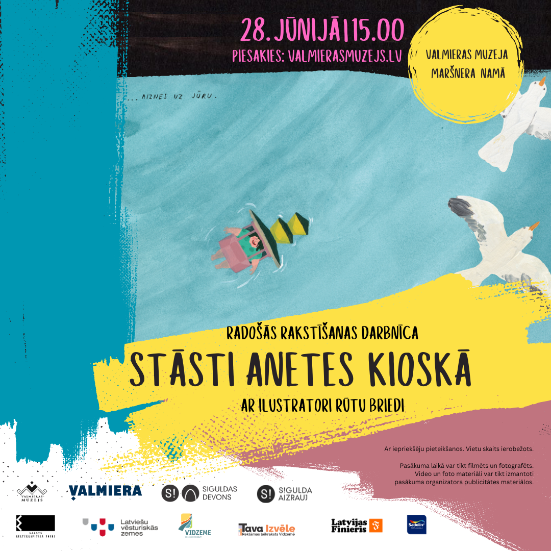 Lai rosinātu bērnus lasīt un attīstīt savu radošo domāšanu, papildinot Valmieras muzeja Maršnera namā visas vasaras garumā skatāmo izstādi “Anetes kiosks”, Valmieras muzejā norisināsies radošās darbnīcas bērniem kopā ar māksliniecēm Aneti Meleci un Rūtu Briedi. Radošās rakstīšanas darbnīca bērniem “Stāsti Anetes kioskā” ar mākslinieci Rūtu Briedi ir pirmā no kopumā sešām radošajām darbnīcām, kas norisināsies jūnijā, jūlijā un augustā.