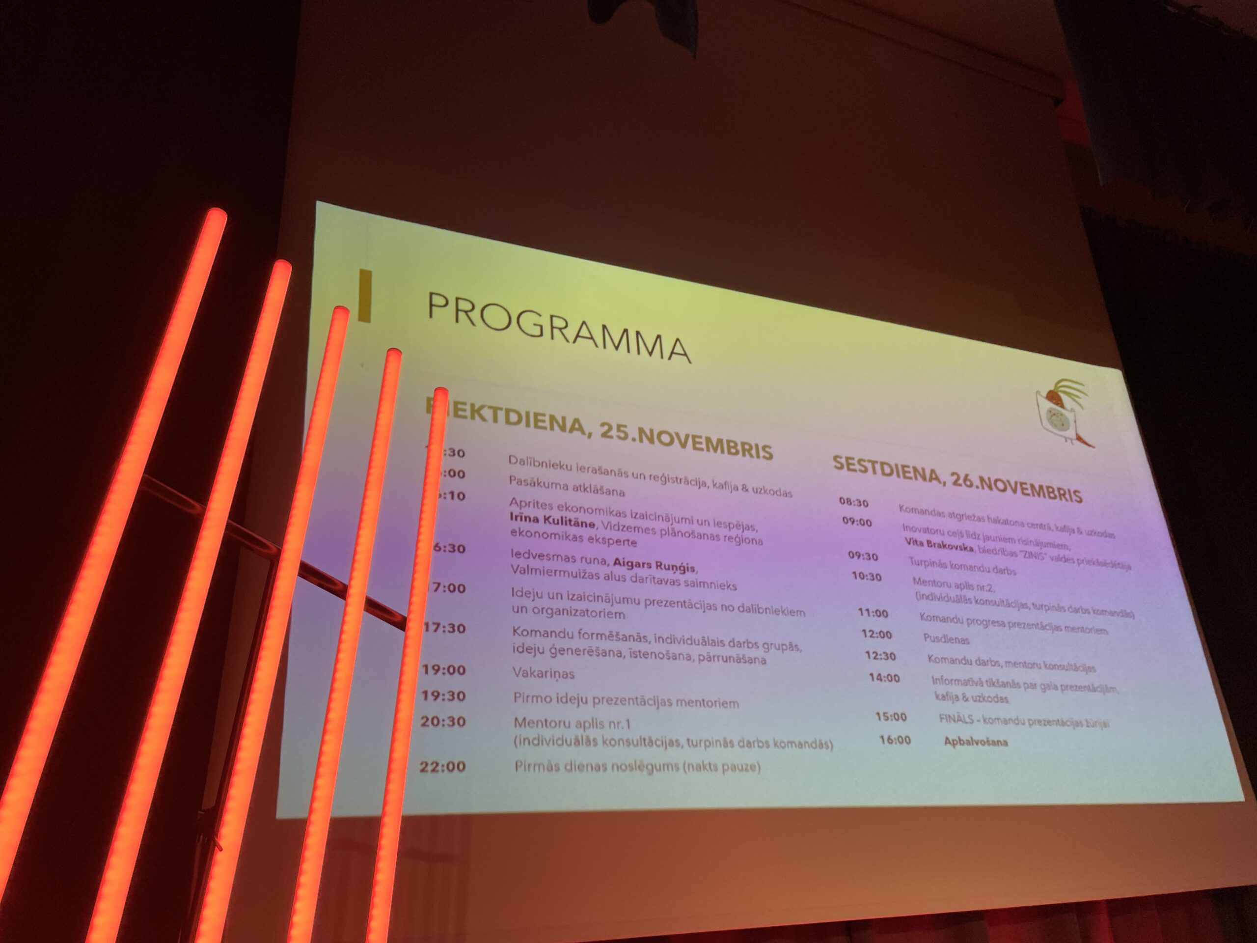 Hakatonā, kas Valmieras tehnikumā norisinājās 24 stundu laika periodā no 25. novembra pulksten 16:00 līdz 26. novembra pulksten 16:00, piedalījās četras komandas. Trīs no komandām izvēlējās attīstīt savas idejas Latvijā unikālu produktu ražošanai. To, ka šī formāta pasākumos piedalīties izvēlas ar iniciatīvu apveltīti, radoši un entuziastiski cilvēki, apliecina fakts, ka, jau ierodoties, dalībniekiem līdzi bija ideju prototipi: suši lapas, kas izgatavotas no gurķiem, sīpolu mizu pulveris un banānu mizu čipsi. Ceturtā komanda pieņēma izaicinājumu no augstas kvalitātes šokolādes ražotāja, lai izvērtētu dažādas iespējas veiksmīgākai produktu virzīšanai tirgū.