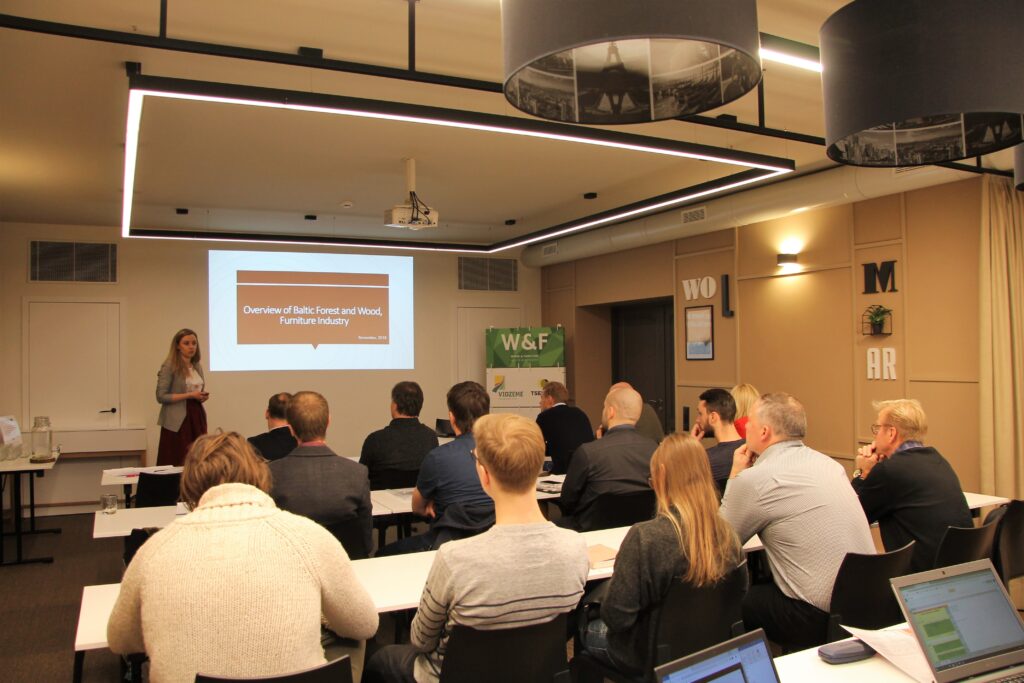 Lai veicinātu tirdzniecības misijas dalībnieku kontaktu veidošanu, visiem tās dalībniekiem vakar norisinājās kopīgs seminārs. Tajā piedalījās un klātesošos uzrunāja arī asociācijas “Latvijas mēbeles” pārstāve Ieva Erele, kura iepazīstināja ar asociācijas darbu un uzņēmēju ieguvumu, sadarbojoties. Analizējot Baltijas valstu kokrūpniecības nozares uzņēmumu eksportu salīdzinošā kontekstā, viņa klātesošajiem detalizēti iezīmēja Latvijas un Igaunijas kokrūpniecības nozares eksporta rādītājus.