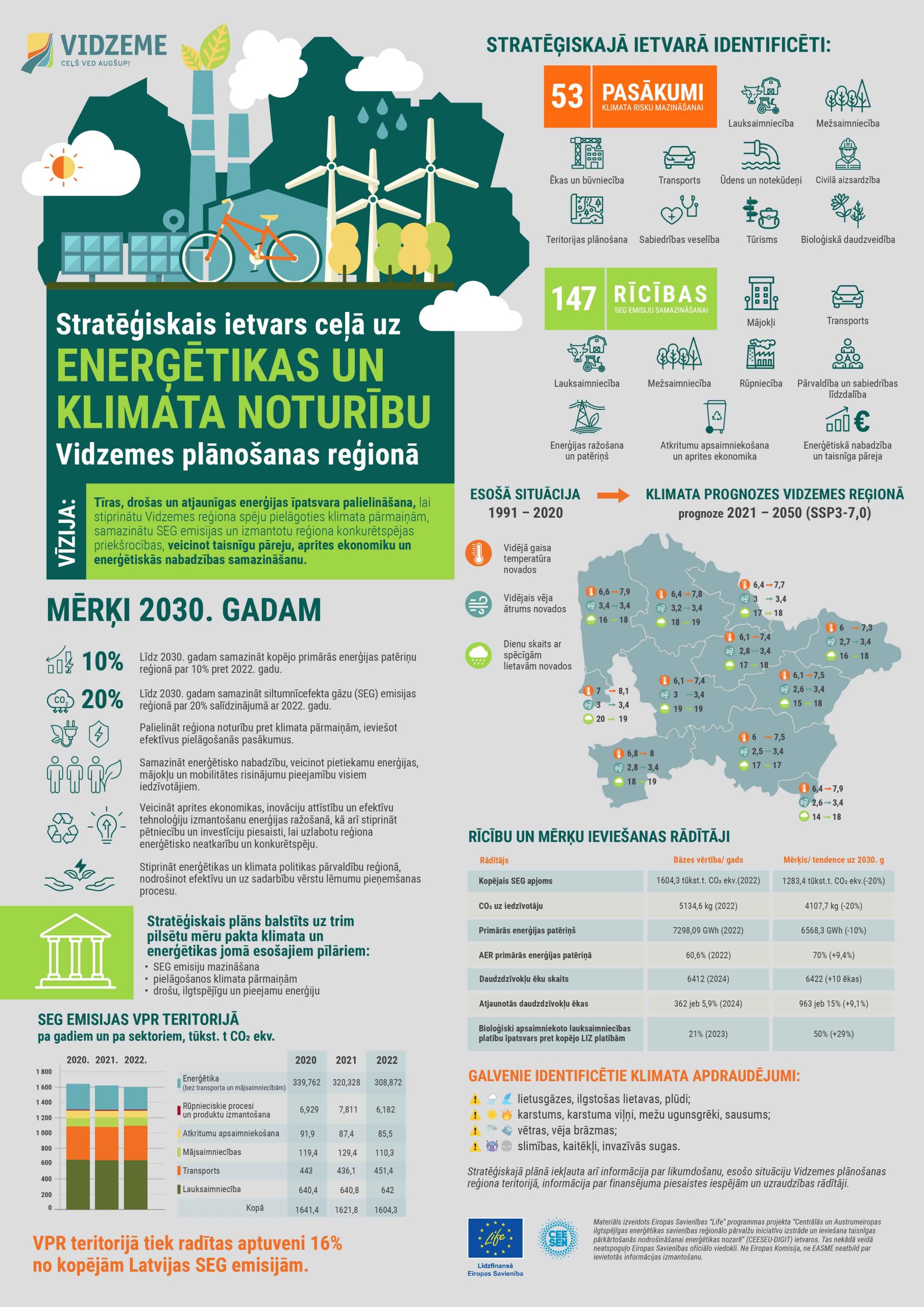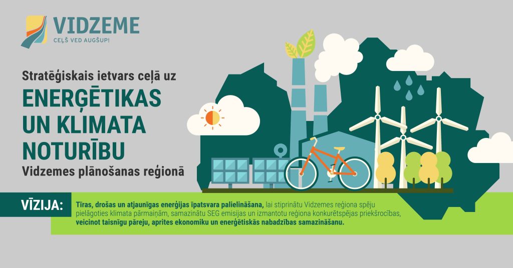 Vidzemes plānošanas reģions ir izstrādājis un Attīstības padomē apstiprinājis dokumentu “Stratēģiskais ietvars ceļā uz enerģētikas un klimata noturību Vidzemes plānošanas reģionā”, kas nosaka reģiona ilgtermiņa prioritātes un rīcību kopumu enerģētikas un klimata politikas jomā. Tā mērķis ir samazināt SEG emisijas, uzlabot energoefektivitāti un stiprināt reģiona noturību pret klimata pārmaiņām.