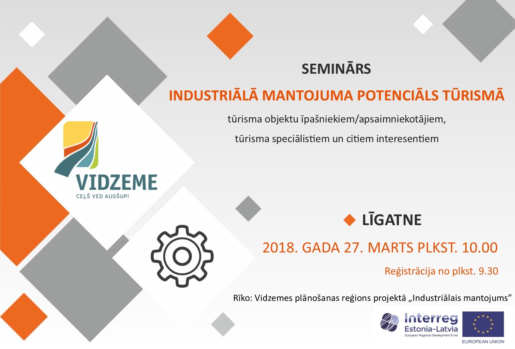 Mūsdienu tehnoloģiju straujā attīstība ir ietekmējusi daudzu vēsturisko industriālo būvju likteni – tās ir pamestas, nekalpo to sākotnējam mērķim. Vairāki Eiropas piemēri apliecina, ka industriālā mantojuma objekti otro elpu gūst tūrismā, ko novērtē apmeklētāji un eksperti, pat iekļaujot tos UNESCO mantojuma sarakstā. Lai diskutētu par industriālā mantojuma potenciālu tūrismā un šādu objektu apsaimniekotāju iespējām, Vidzemes plānošanas reģions aicina uz semināru Līgatnes Kultūras namā 2018. gada 27. martā plkst. 10.00 (reģistrēšanās sāksies plkst. 9.30).