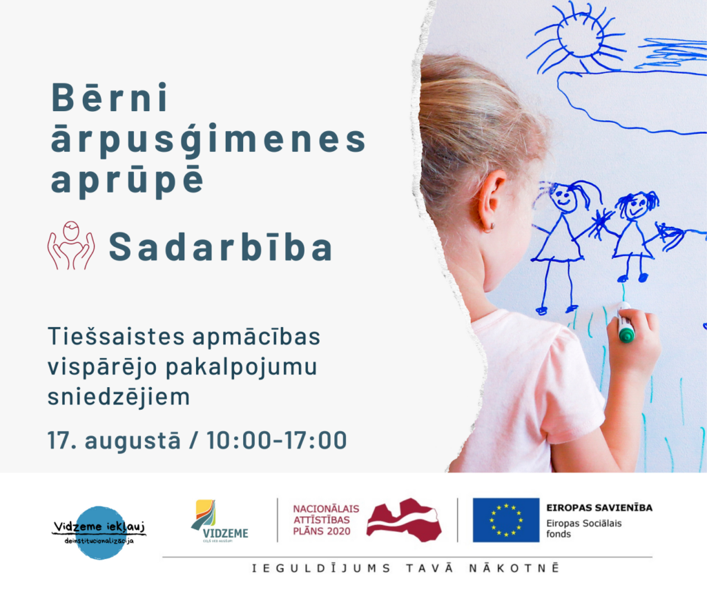 Lai pārspriestu sabiedrībā pastāvošos aizspriedumus, kā arī problēmas un iespējamos risinājumus situācijās saistītās ar bērniem ārpusģimenes aprūpē, Vidzemes plānošanas reģions sadarbībā ar Labklājības ministriju un Profesionālo audžuģimeņu apvienību “Terēze” 17. augustā organizē bezmaksas tiešsaistes apmācības vispārējo pakalpojumu sniedzējiem Vidzemē.