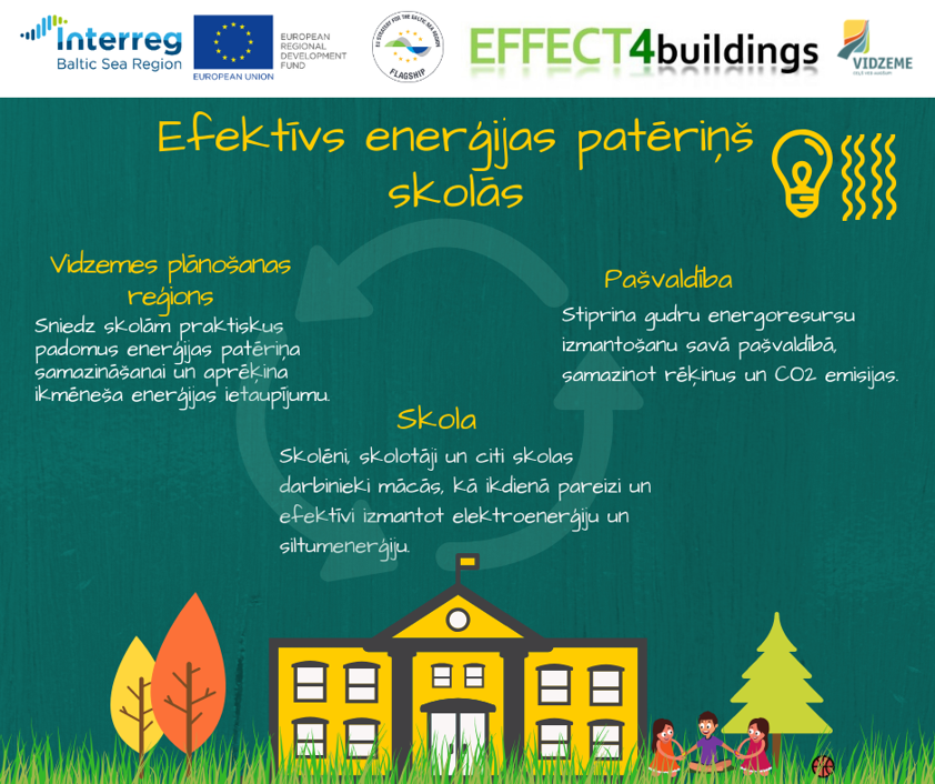 Vidzemes plānošanas reģions (VPR) aicina pašvaldības līdz šī gada 31. oktobrim pieteikt skolas programmai “Efektīvs enerģijas patēriņš skolās”. Programmas laikā tās dalībnieki tiks aicināti mainīt paradumus un ieviest nelielus, bet regulārus pasākumus ar mērķi samazināt enerģijas patēriņu, nesamazinot komforta apstākļus telpās. Sasniegtais izmaksu ietaupījums tiks izmantots pašvaldības un skolas vajadzībām. Dalība programmā ir bezmaksas.