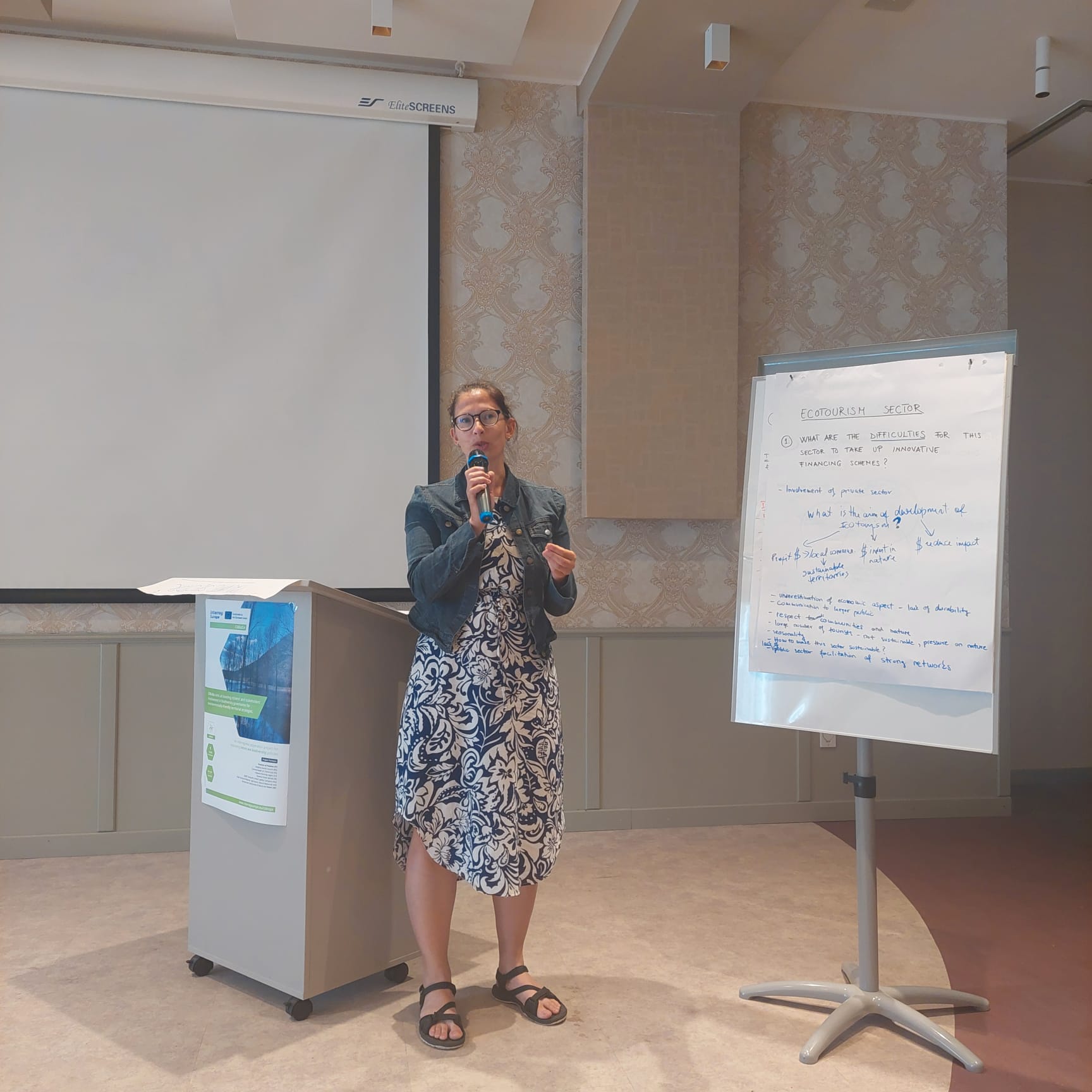 Otrā pieredzes apmaiņas diena tika veltīta darbsemināram un meistarklasei. Abas šīs aktivitātes sniedza jaunas idejas un risinājumus inovatīvu finansēšanas metožu publiskajiem, privātajiem un ekotūrisma aspektiem. Klātesošie iepazinās ar oglekļa kredītiem – sertifikātiem, kas ļauj uzņēmumiem un organizācijām kompensēt oglekļa dioksīda emisijas, ekonomiski stimulējot zemu emisiju tehnoloģiju attīstību un veicinot cīņu pret klimata pārmaiņām. Dalībnieki izzināja arī tiešsaistes dabas kredītu kampaņu “Atdot dabai”. Šī kampaņa darbojas gan tiešā veidā, stādot kokus un atjaunojot mežus, gan netiešā veidā, veicinot sabiedrības izpratni un atbalstu vides aizsardzības iniciatīvām. Semināra laikā tika apspriestas arī citas novatoriskas finansēšanas metodes, kā arī pārrunātas dažādu atbalsta mehānismu priekšrocības un izaicinājumi. Dienas noslēgumā tika aplūkoti dažādi ekotūrisma piemēri. VPR pārstāve, projekta eksperte un Vidzemes Augstskolas lektore Ilze Grīnfelde iepazīstināja klātesošos ar projektu “Mežtaka”, skaidrojot, kā iesaistīt iedzīvotājus un kopienas, kā arī komunicēt par dabas vērtībām.