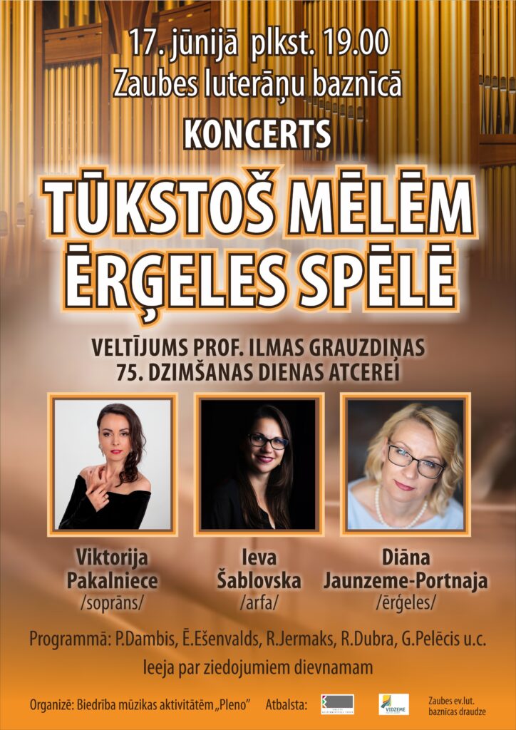 2023. gada 17. jūnijā plkst. 19.00 Zaubes luterāņu baznīcā notiks koncerts “Tūkstoš mēlēm ērģeles spēlē…”, kas izskanēs kā veltījums profesores Ilmas Grauzdiņas 75. dzimšanas dienas atcerei.